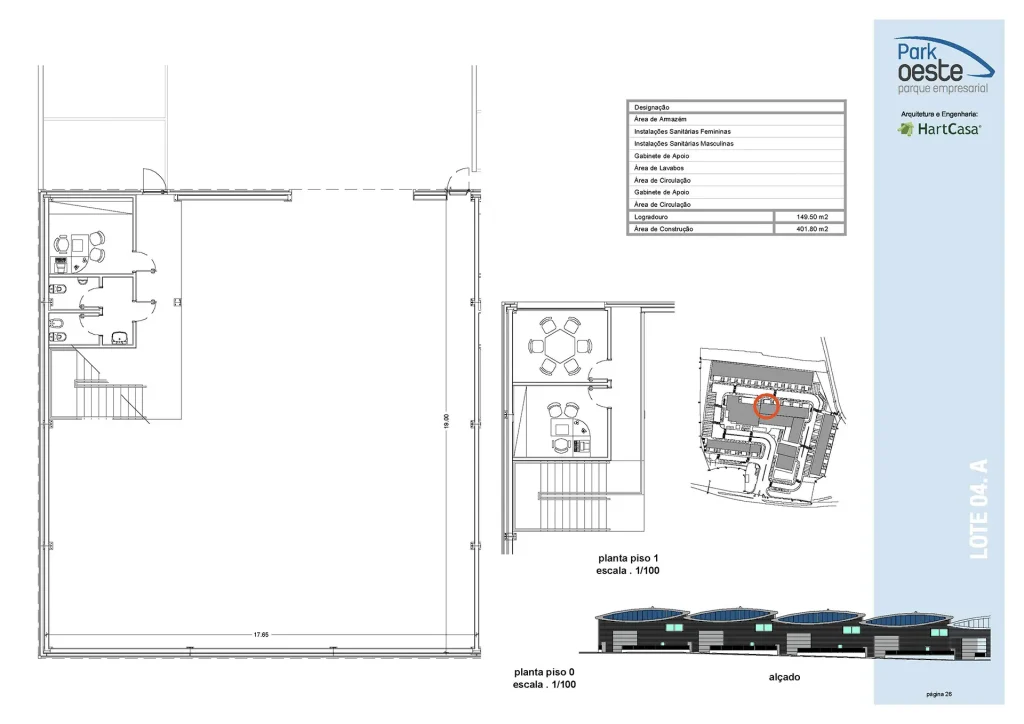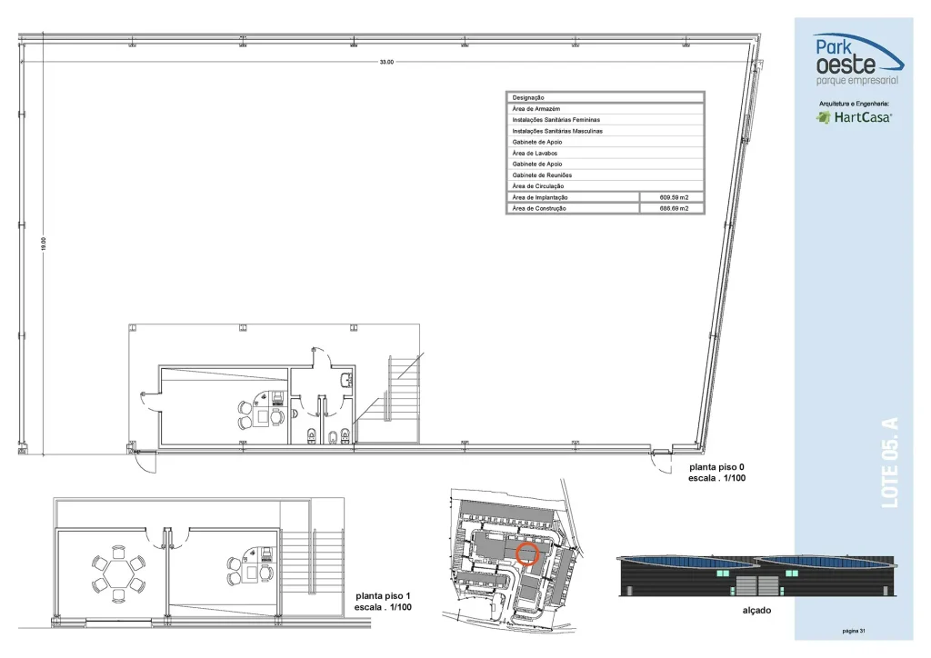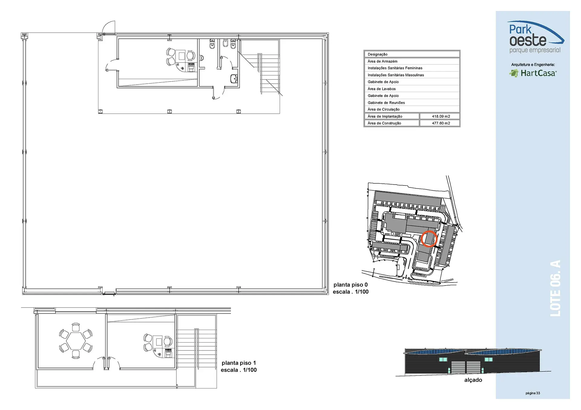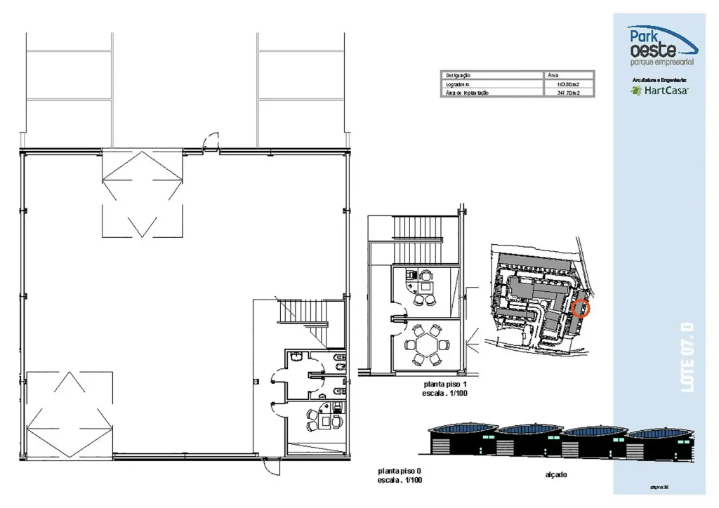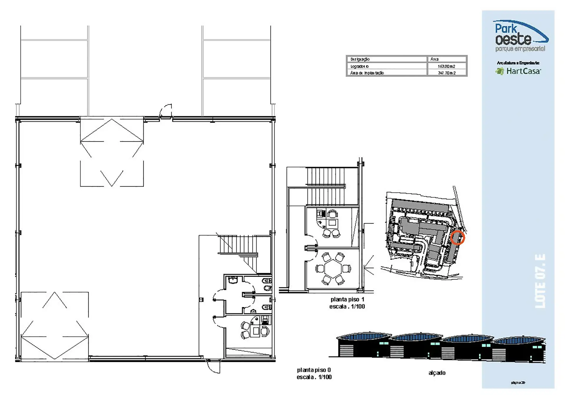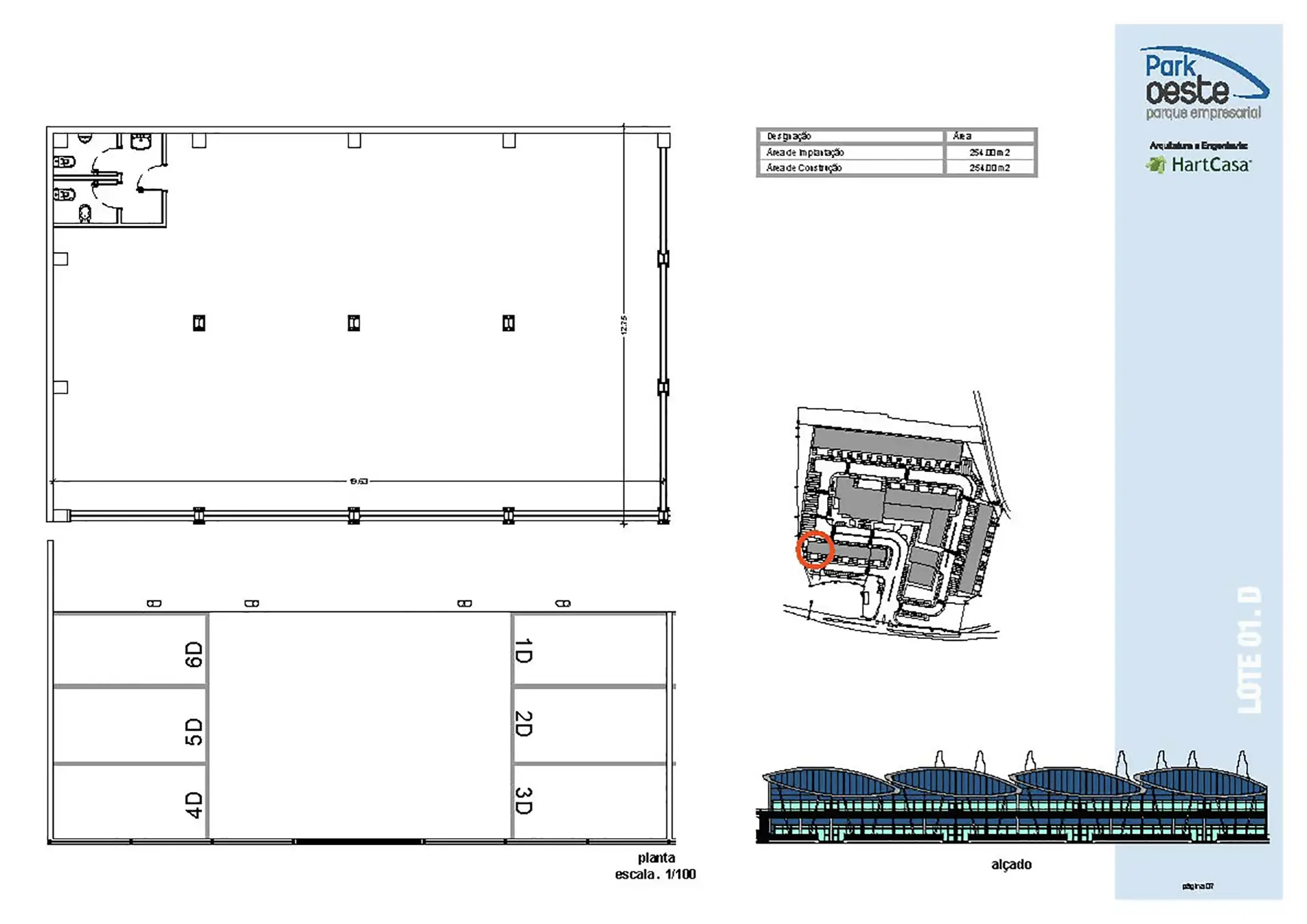 Com 700 m² de área de terreno, possuirá igual área de implantação e 1.400 m² de área bruta de construção total, com 2 pisos acima do solo e cave. Uso: Indústria.