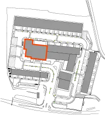 Edifício industrial composto por uma nave destinada a armazém, e um núcleo de dois pisos constituído por rés-do-chão destinado a showroom e 1º andar destinado a escritórios, com uma área de 2814 m2.
