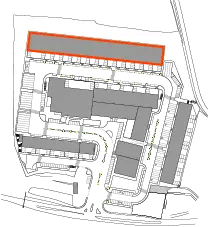 Edifício industrial, constituído por 6 frações autónomas de piso térreo, todas com logradouro, destinadas a comércio ou serviços. Cada fração tem uma área de 347,7 m² e uma área de logradouro de 163,8 m². Área total edificada de 2.086,2 m².