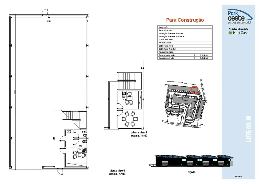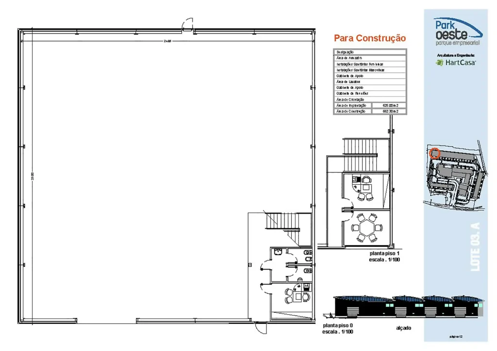Com 750 m² de área de terreno, possuirá igual área de implantação e 1.500 m² de área bruta de construção total, com 2 pisos acima do solo e cave. Uso: Indústria.